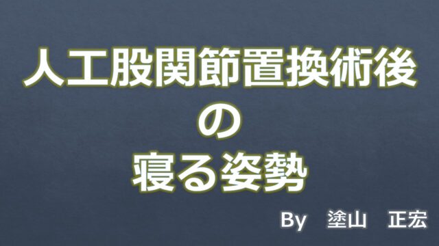 股関節 股関節357 人工股関節置換術後の寝る姿勢 股関節の痛みが出る病気(変形性股関節症、寛骨臼形成不全、特発性大腿骨頭壊死症)の治療(保存療法)、および手術(人工股関節置換術、最小侵襲手術、MIS、前方アプローチ)について整形外科専門医(人工関節手術を専門)の塗山正宏が色々と説明します。 2025.12.22 股関節