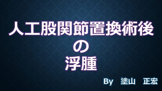 股関節 股関節362 人工股関節置換術後の浮腫 股関節の痛みが出る病気(変形性股関節症、寛骨臼形成不全、特発性大腿骨頭壊死症)の治療(保存療法)、および手術(人工股関節置換術、最小侵襲手術、MIS、前方アプローチ)について整形外科専門医(人工関節手術を専門)の塗山正宏が色々と説明します。 2026.01.26 股関節